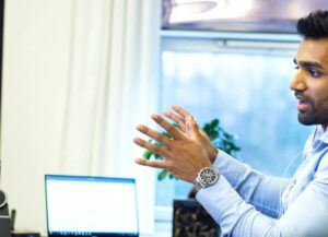 man having an online call